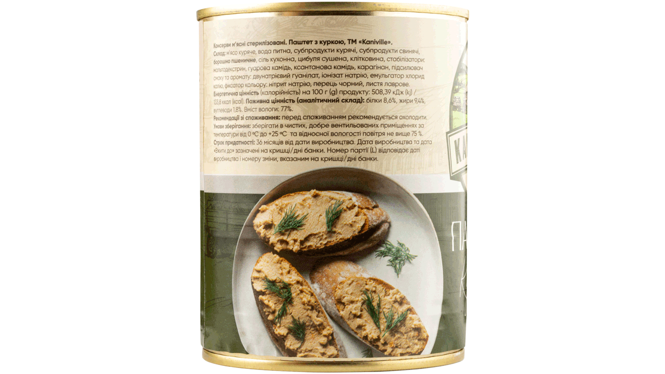 Отже, аби ваше харчування було поживним і різноманітним, придбайте запас смачнючого паштету із м’яса курки ТМ «Kaniville»! Такі ніжні курячі консерви завжди виручать вас і подарують вам неабияку смакову насолоду.